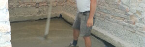secondo ciclo con intonaco ROOFIX 635 eseguito fresco su fresco sulla malta osmotica ROOFIX 636 in precedenza stesa. https://www.roefix.it/Prodotti/Risanamento-Restauro-Bioedilizia/Impermeabilizzazione/ROeFIX-635-Intonaco-osmotico-per-impermeabilizzazioni-a-spessoreGetto della platea interna, armata con rete elettrosaldata, e sottostante posa di telo anti radon “RADONSPERRE.https://www.doerken.com/bvf-it/produkte/mauer/horizontal/produkte/radonsperre.php