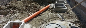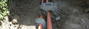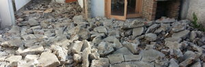 La ristrutturazione inizia con la demolizione e sbancamento dei marciapiedi ed annessa area esterna con mini escavatore dotato di martello pneumatico, a seguire poi tutta la rete fognaria separata per acque bianche e nere.