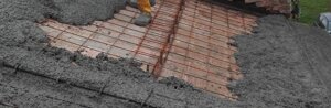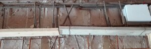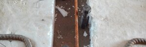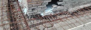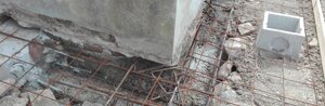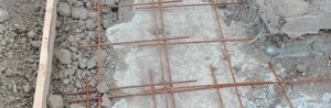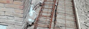 Fondazioni : eseguito il getto di pulizia ci apprestiamo al posizionamento delle gabbie di ferro per le fondazioni perimetrali interne ed esterne collegate fra loro ogni metro da da tronchi di gabbie che attraversano la parete. Alle gabbie esterne viene collegata la rete elettrosaldata per la formazione del nuovo marciapiede.