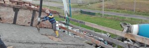 I° Solaio : Una volta ultimate le fondazioni, si passa al consolidamento del del 1° solaio su due livelli di tre tipologie : travi varesi e tavelloni, travi in legno con travicelli e tavelle, putrelle in ferro con tavelloni . Su tutte le travi dei solai cemento/legno/ferro vengono avvitati i connettori http://www.al-fer.it/che hanno la funzione di rinforzo , sul solaio viene poi stesa una lastra di polistirolo per alleggerire la soletta, sopra di essa la rete elettrosaldata legata anche perimetrarlmente da travi in opera, ancorate ai muri portanti con ferro tondo per c.a. a coda di rondine . Il getto del solaio viene eseguito a mezzo di pompa con cls RCK350 alleggerito con leca 1400 strutturale.