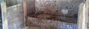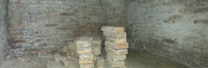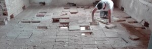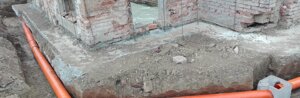 Demolizioni pavimenti e scavi : A seguire si passa alla rimozione non che smontaggio di tutti i mattoni, delle mangiatoie della stalla , delle pavimentazioni di tutti gli ambienti e successivo scavo di sbancamento eseguito a mano ad eccezione della stalla che viene utilizzato utilizzato un mini escavatore. Ulteriore scavo a sezione interno ed esterno per l'alloggiamento delle gabbie di ferro che andranno a formare le nuove fondazioni .